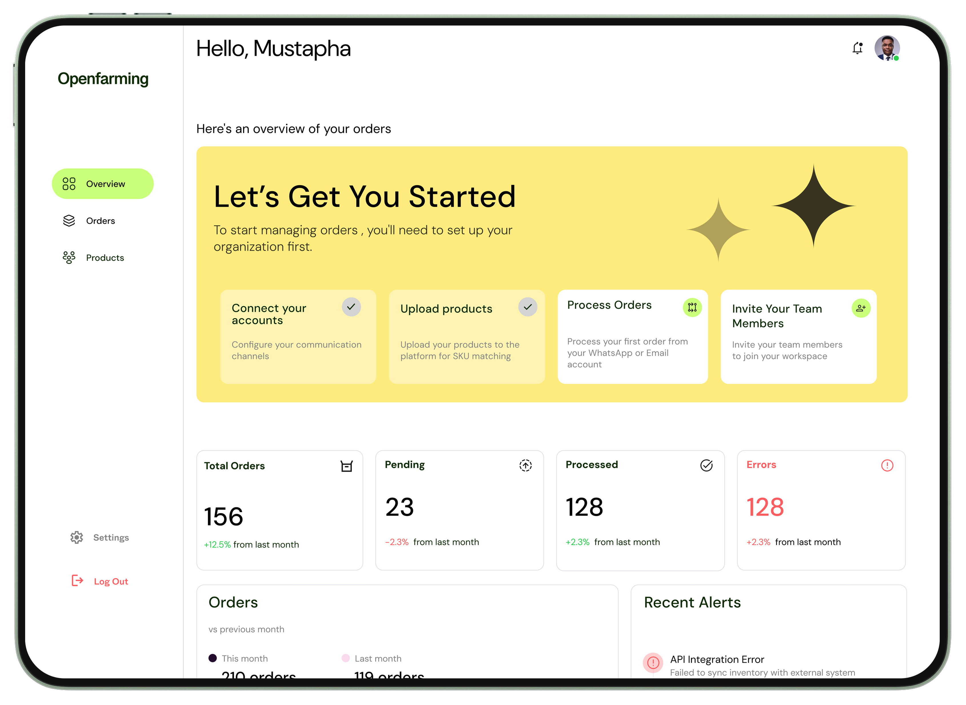 تقوم منصة OpenFarming بقراءة كل رسالة، واستخراج المنتجات والكميات، وتحويلها إلى طلبات جاهزة وواضحة ويمكن اعتمادها فورًا.